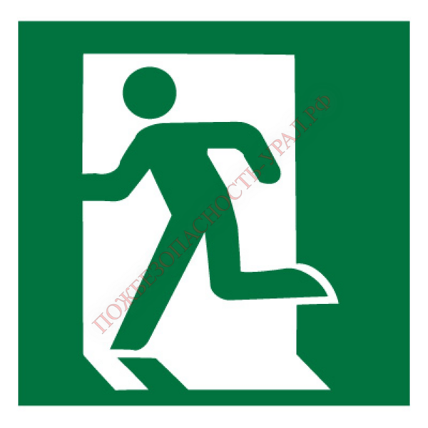 Знак E 01-01, фотолюм., самокл. 200х200 мм., Выход здесь (левосторонний) - ПОЖАРНАЯ БЕЗОПАСНОСТЬ