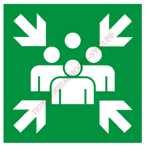 Знак E 21, фотолюм., самокл. 200х200 мм., Пункт (место) сбора - ПОЖАРНАЯ БЕЗОПАСНОСТЬ