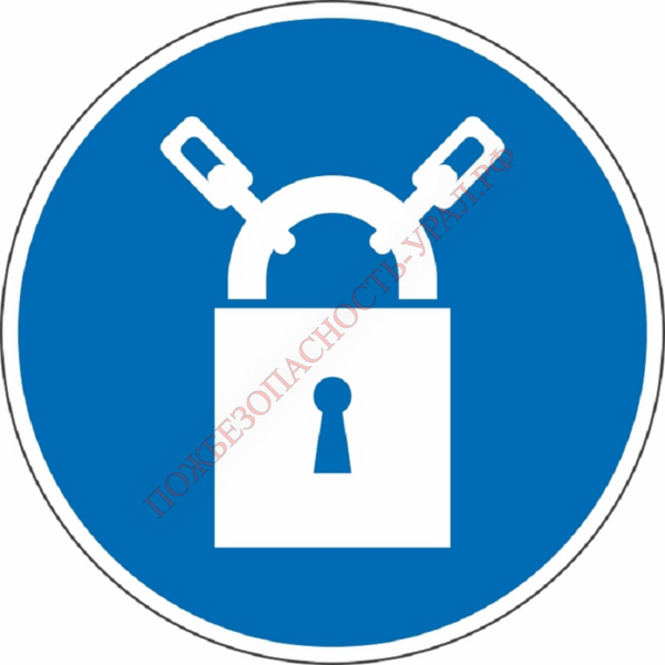 Знак M 32, самокл. 200х200 мм., Закрывать на замок - ПОЖАРНАЯ БЕЗОПАСНОСТЬ
