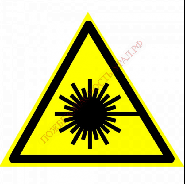 Знак W 10, самокл. 100х100 мм., Опасно. Лазерное излучение - ПОЖАРНАЯ БЕЗОПАСНОСТЬ