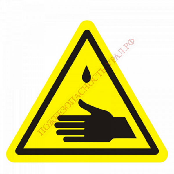 Знак W 21, пластик 2 мм., 100х100 мм., Осторожно Возможное попадание ядовитых веществ на кожу рук - ПОЖАРНАЯ БЕЗОПАСНОСТЬ