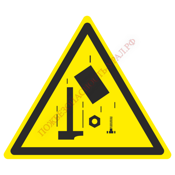 Знак W 34, самокл. 100х100 мм., Осторожно. Падающие предметы - ПОЖАРНАЯ БЕЗОПАСНОСТЬ