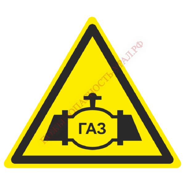 Знак W 38, самокл. 100х100 мм., Осторожно. Газопровод - ПОЖАРНАЯ БЕЗОПАСНОСТЬ