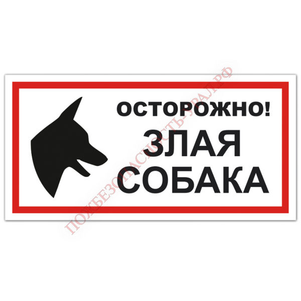 Знак VS 14-01, самокл. 100x200  мм., Осторожно! Злая собака - ПОЖАРНАЯ БЕЗОПАСНОСТЬ