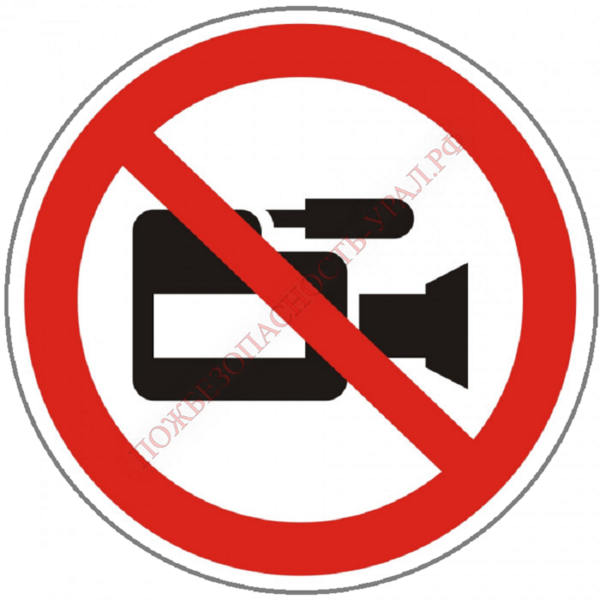 Знак P 47, самокл. 200х200 мм., Съемка видеокамерой запрещена - ПОЖАРНАЯ БЕЗОПАСНОСТЬ