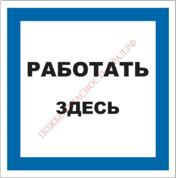 Знак Т 23, самокл. 200х200 мм., Работать здесь - ПОЖАРНАЯ БЕЗОПАСНОСТЬ