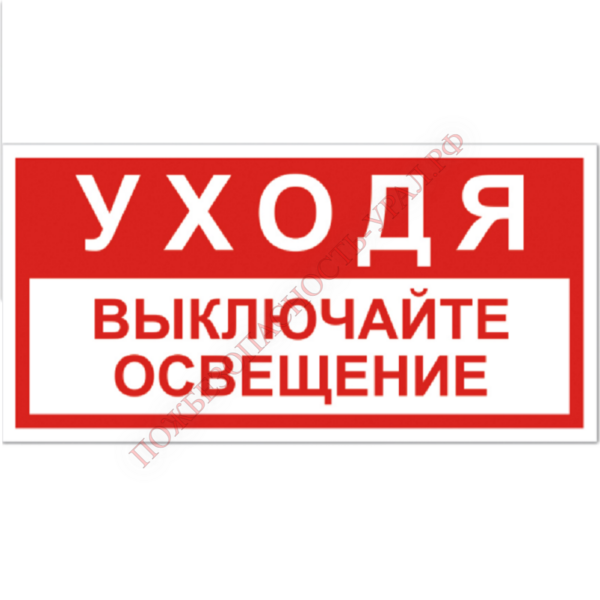 Знак T 39-01, самокл. 100x200  мм., Уходя выключайте освещение - ПОЖАРНАЯ БЕЗОПАСНОСТЬ