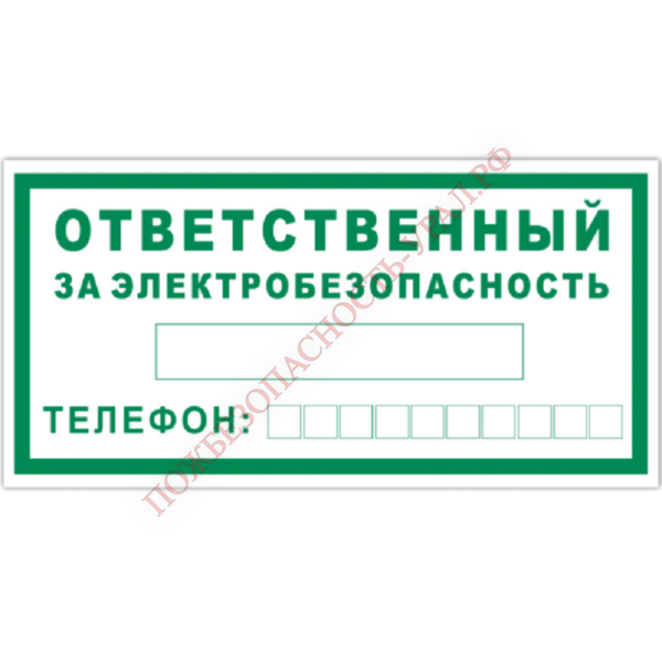 Знак T 60, пластик 2 мм., 100х200 мм., Ответственный за электробезопасность - ПОЖАРНАЯ БЕЗОПАСНОСТЬ