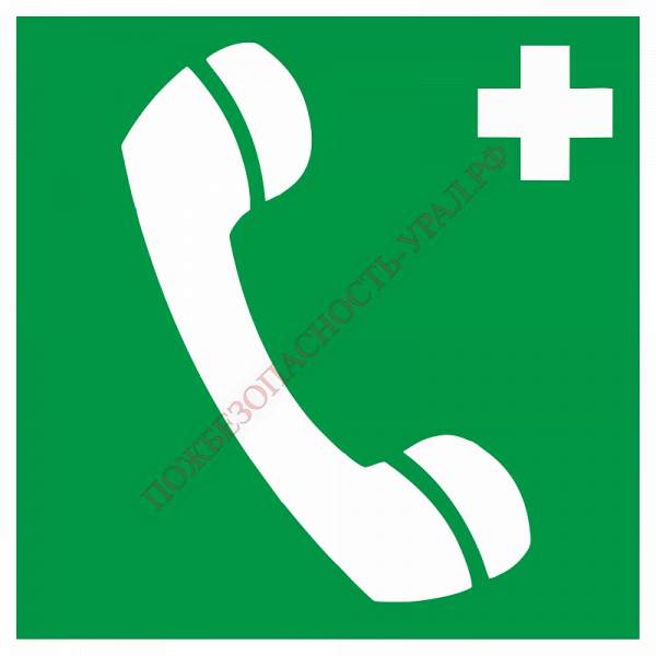 Знак EC 06, фотолюм., пластик 2 мм., 200х200 мм., Телефон связи с медицинской и скорой помощью - ПОЖАРНАЯ БЕЗОПАСНОСТЬ