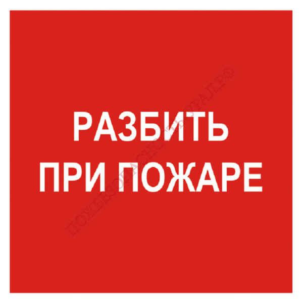 Знак F 17, самокл. 100х100 мм., Разбить при пожаре - ПОЖАРНАЯ БЕЗОПАСНОСТЬ